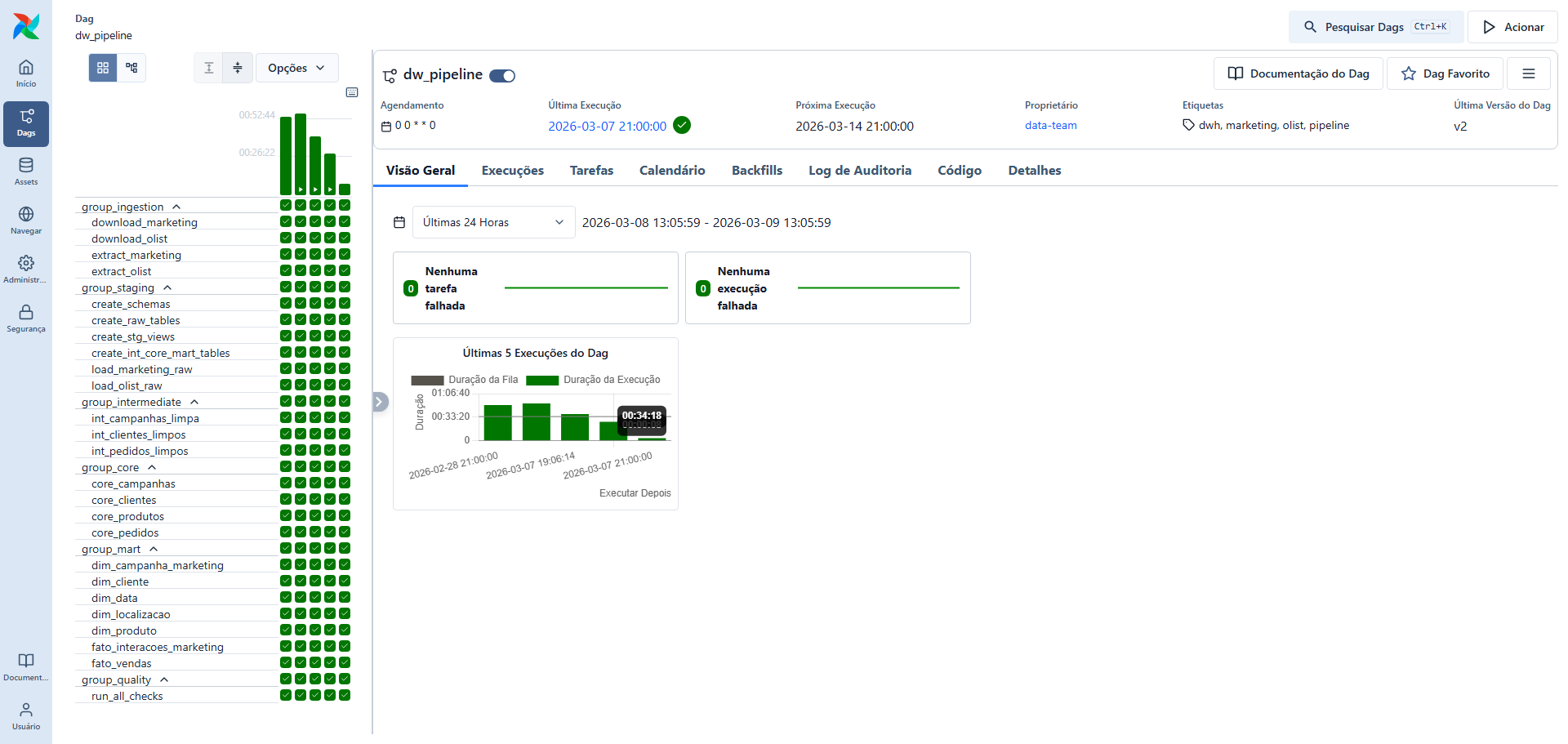 - Data Warehouse provisionado e operacional na AWS em produção