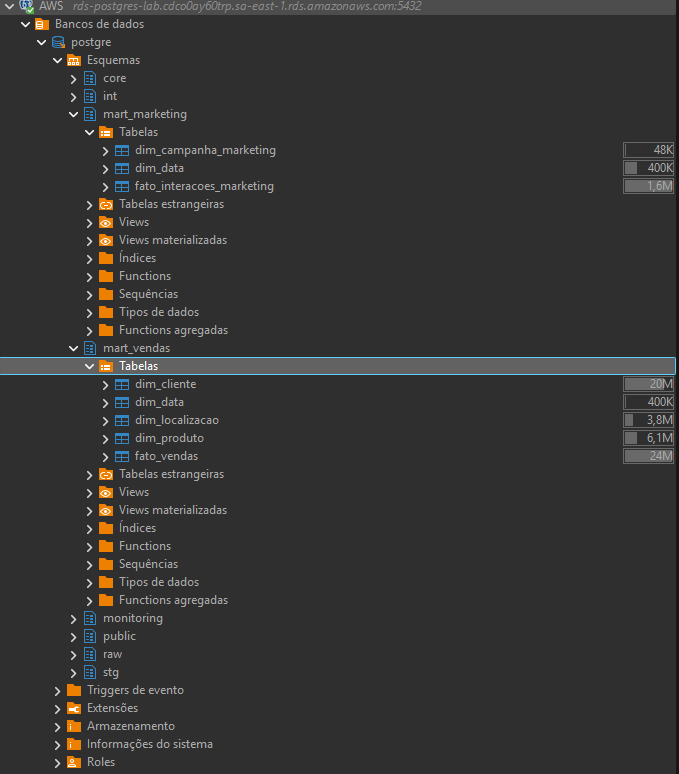 - Acesso e modelagem via DBeaver conectado ao Amazon RDS